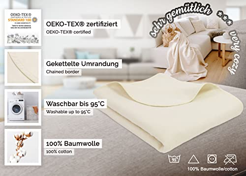ZOLLNER Kuscheldecke in 160×200 cm – weiche und wärmende Wohndecke in rohweiß – waschbar bis 95°C – Hotelqualität – Oeko Tex® Zertifiziert