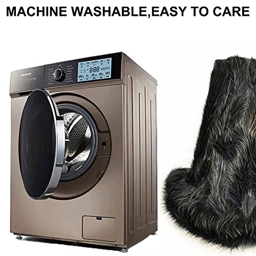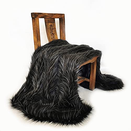 ♛ PREMIUM-HAUSDEKORATION: Zotteliges und flauschiges Kunstfell, schwarze Pfauenfeder Dicke Decke, schafft einen erstklassigen Wohnakzent für jede Inneneinrichtung, indem sie über Ihr Bett, Ihre Couch, Ihr Sofa, Ihren Stuhl oder sogar auf den Boden drapiert wird