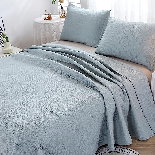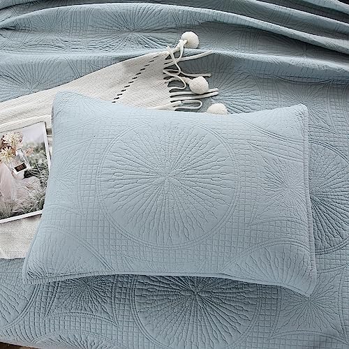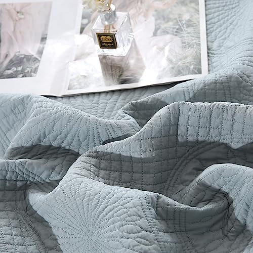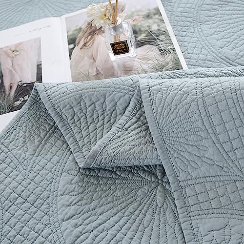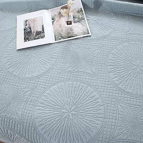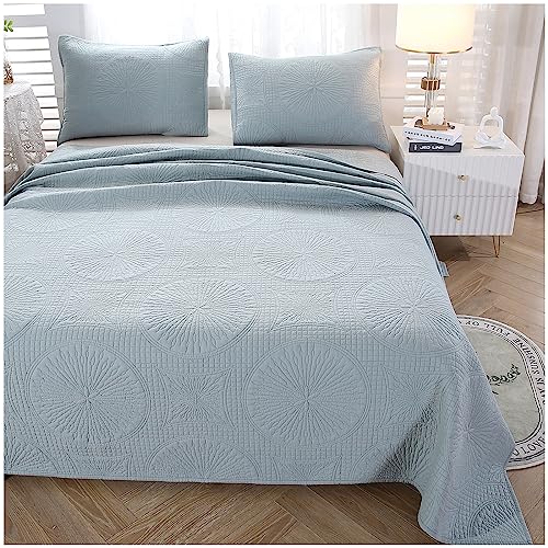 ZTGL Tagesdecke Bettüberwurf Doppelbett, Bedspreads aus Baumwolle, Quilt Überwurf Bett Überwurfdecke leicht, Sommer Steppdecke Gesteppt mit Exquisite Stickerei mit 2 Kissenbezug, Blau,270x234cm