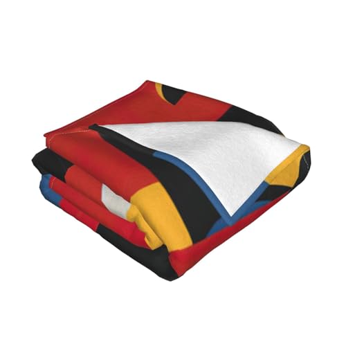 Erleben Sie beispiellosen Komfort und Wärme mit unserer Komposition auf einer roten, gelben, blauen und schwarzen Fleecedecke. Hergestellt alle Antipilling-Flanell-Fleece, bietet diese Komposition in einer roten, gelben und schwarzen bedruckten Decke ein luxuriöses, samtiges Emotion, das weich und warm ist. Das leichte Design macht es leicht zu falten und zu verstreben, perfekt für den Einsatz auf dem Bett, Sofa, Camping und sogar in einem kühlen Kino.