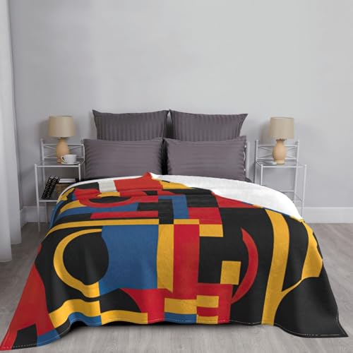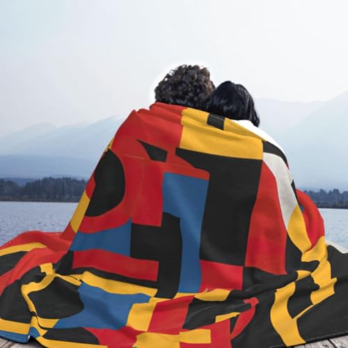 Anti-Pilling- und Faltenbeständig: Fortschrittliches Material sorgt dafür, dass die gedruckte rote, gelbe, blaue und schwarze Komposition auf der Decke gegen Pilling, Falten und Stürze konstant ist und im Laufe der Zeit Weichheit und das Aussehen beibehält.
