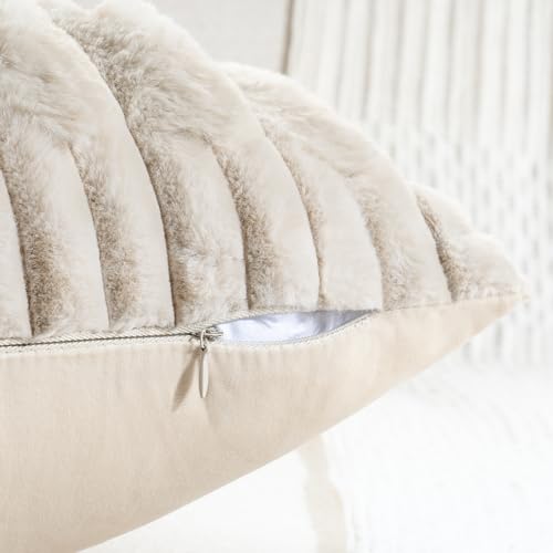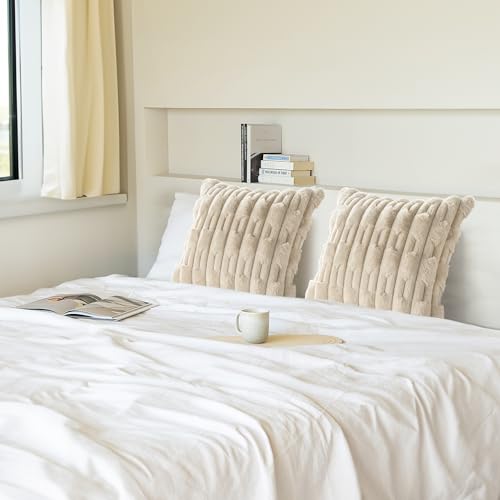 ZWJD 2er Set Beige Kissenbezug 40×40 Kunstpelz Plüsch Kissenbezüge Weiche Kissenhülle Flauschig Dekokissen Moderne Kissen Deko für Wohnzimmer Sofa Schlafzimmer Auto Dekor Sofakissen 40 x 40cm