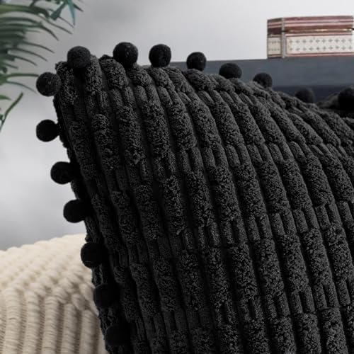 ZWJD 2er Set Kissenbezug 40×40 Kordsamt Sofakissen Weiche Kissenhülle Boho Kissenbezüge Dekokissen Moderne Kissen Deko für Couch Schlafzimmer Zuhause Auto Dekor Zierkissenbezüge Schwarz