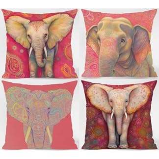 Kissenbezug 80×80 cm 4er Set, Outdoor Kissen Elefant Sofakissen Rosa Dekokissen, Doppelseitiger Druck Wasserdichtes SanftKissenbezüGe, KissenhüLlen für Auto Schlafzimmer Deko Wohnzimmer Model-12818