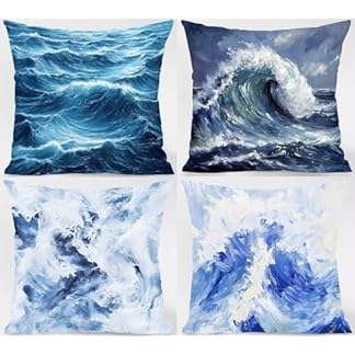 €80,99Produkt kaufenKissenbezug 80×80 cm 4er Set, Outdoor Kissen Meereswellen Sofakissen Blau Dekokissen, Doppelseitiger Druck Wasserdichtes Leinen KissenbezüGe, KissenhüLlen für Schlafzimmer Deko Wohnzimmer Model-06350