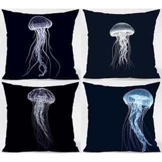 €80,99Produkt kaufenKissenbezug 80×80 cm 4er Set, Outdoor Kissen Qualle Sofakissen Schwarz Dekokissen, Doppelseitiger Druck Wasserdichtes SanftKissenbezüGe, KissenhüLlen für Auto Schlafzimmer Deko Wohnzimmer Model-10506