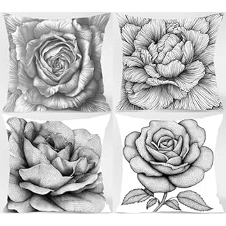 €80,99Produkt kaufenKissenbezug 80×80 cm 4er Set, Outdoor Kissen Rose Sofakissen Schwarz und Weiß Dekokissen, Doppelseitiger Druck Wasserdichtes Leinen KissenbezüGe, KissenhüLlen für Garten Deko Wohnzimmer Model-06486