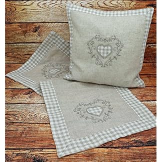 €9,79Produkt kaufenheimtexland Landhaus Kissenhülle Vichy Karo 50 x 50 cm Natur Leinen Herz Stickerei Applikation Kissen Country Chic Deko ÖKOTEX Typ502