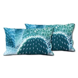 Glücksvilla – Künstler-Foto-Kissen-Hüllen – Kissen-Bezüge Set (2 STK.) 80 x 40 cm, Zierkissen – Deko-Kissen. Motiv: Kakteenwelt 3 – Kaktus Pflanze Blätter Natur Garten Botanik grün blau Fotografie