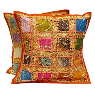 €321,91Produkt kaufenPUSHPACRAFTS Set mit 2 indischen Vintage-Kissenbezügen aus Baumwolle, quadratisch, mit Stickerei und Patchwork, 41 x 41 cm, Orange