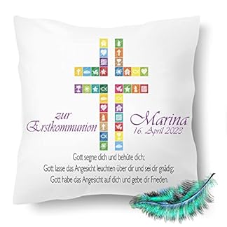 €16,90Produkt kaufenPrint Deluxe Kommunion Geschenk, bedrucktes Kissen personalisiert mit Namen und Datum | Kirchliches Fisch Symbole |Geschenk Idee,Dekokissen | Kuschelkissen 40X40 Bedruckt (ohne Kissenfüllung, Bunt)